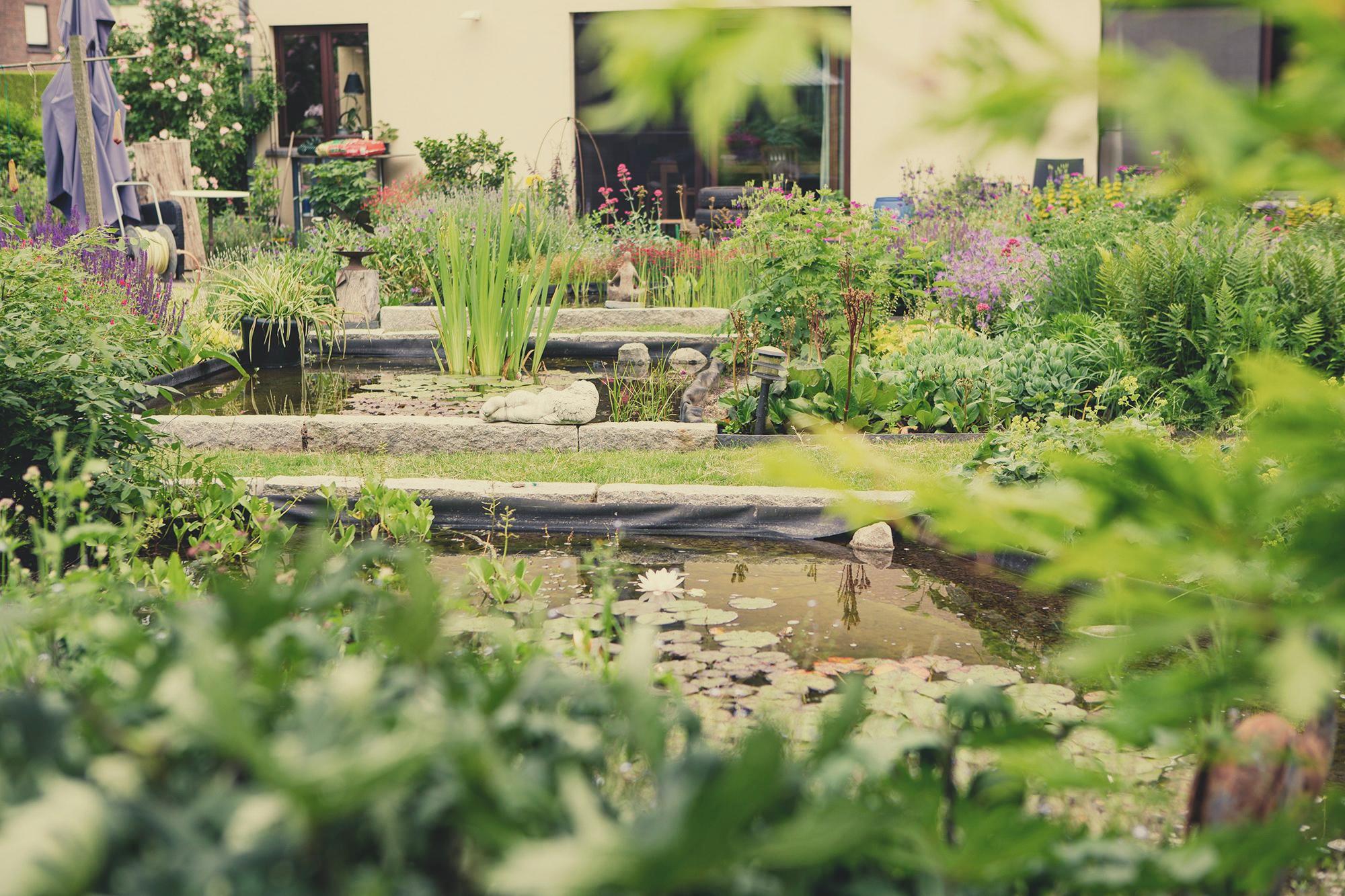 We werken steeds met de natuurlijke gelaagdheid. Dit wil zeggen dat de strooisellaag (gras), de kruidlaag (vaste planten), de struiklaag en de boomlaag altijd aanwezig zijn in de tuin. Ook de bestaande grondsoort en de ligging van de tuin krijgen onze aandacht. Want schaduwrijke tot zonnige ligging, wind en droge tot nattere zones binnen een zelfde tuin vragen een andere plantenkeuze. En zo ontstaat er een rijke biodiversiteit!